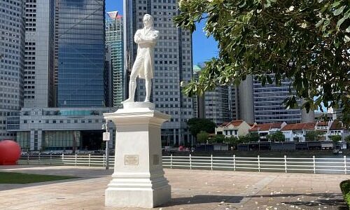 래플스 상륙지에는 그의 동상이 서 있어요.