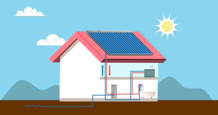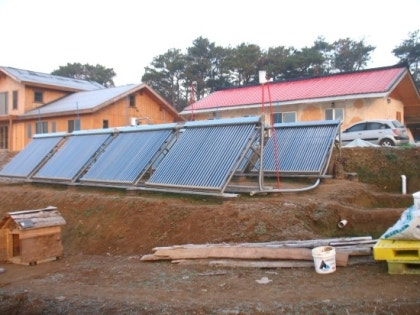 (위 사진: 일반 가정 지붕에 설치된 태양열 온수기 예시)