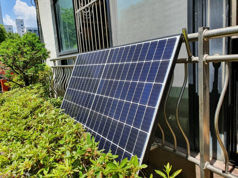 (아파트 베란다에 설치된 소형 패널 예시 – 태양열은 비슷하지만 드물어요)