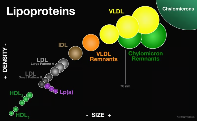 - Chylomicron → VLDL → IDL → LDL → HDL 순으로 밀도가 높아집니다.