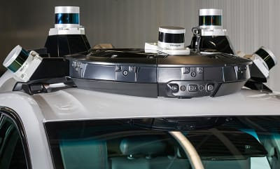 (위 사진처럼 자율주행차 지붕에 원통형 또는 돔 형태로 장착된 것이 전형적인 LiDAR 센서예요.)