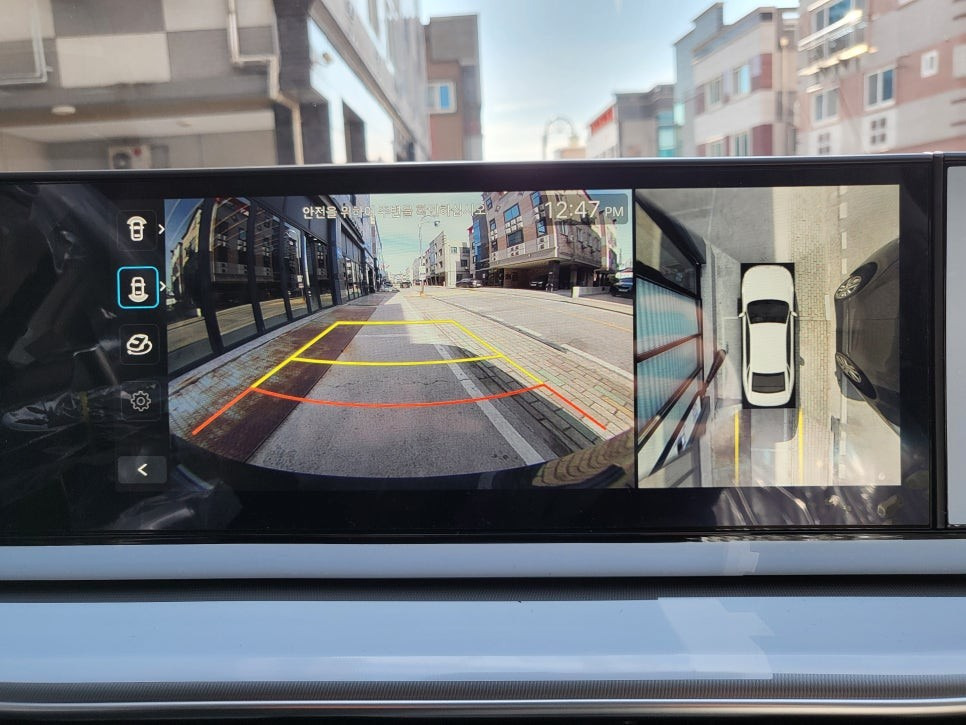 현대 그랜저의 서라운드 뷰는 정교한 카메라 배치와 첨단 영상 처리 기술 덕분에 가능하며, 대형 세단의 단점(넓은 차체로 인한 사각지대)을 완벽하게 보완해줍니다.