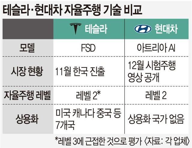 | 현재 단계 | 감독형 완전 자율주행 (한국 출시) | Level 3 준비 중, Level 4 로보택시 상용화 앞둠 |