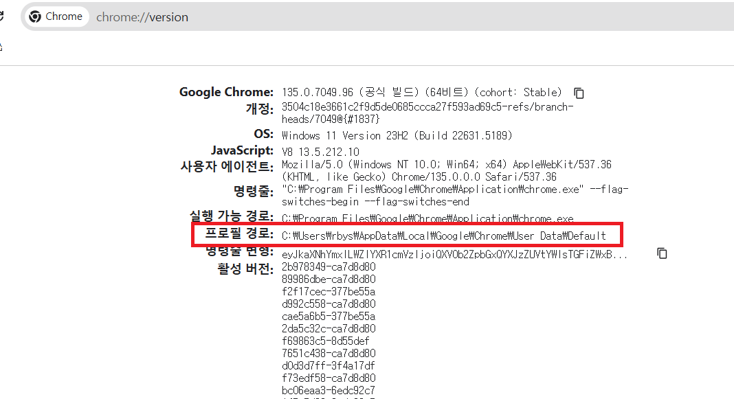 크롬의 주소창에 chrome://version(whale://version/) 를 실행후 박스친 폴더의 preference 파일을 수정해 줘야한다.