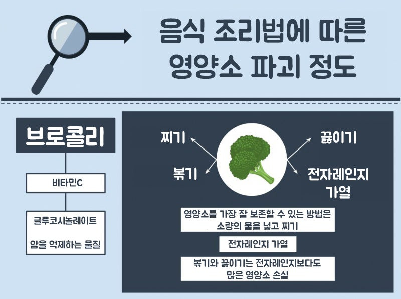 - 예: 브로콜리 플라보노이드 손실 주장 있었지만, 최근 연구에서는 전자레인지가 비타민 C 보존율이 높고(90% 이상), 일부 항산화물질이 증가할 수 있음.