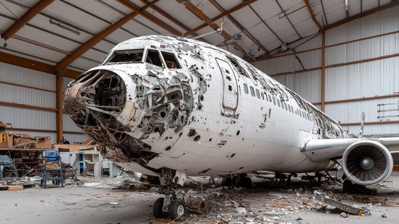 (항공기 폐기물에서 티타늄 부품을 회수하는 모습과 항공 엔진 예시)