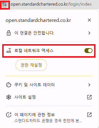 해결 방법: SC제일은행 사이트에 로컬 네트워크 액세스 허용