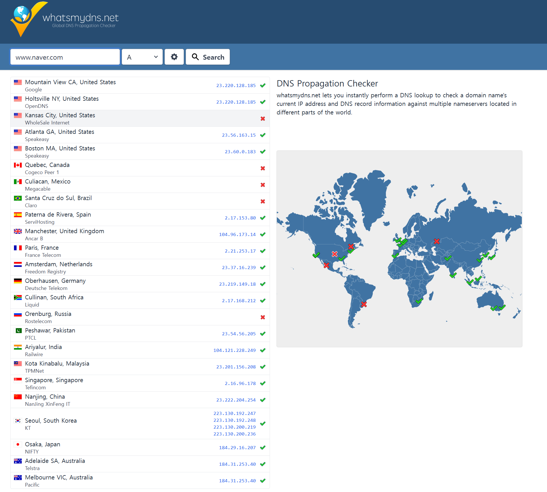 아니면 전세계 dns서버에 등록된 ip를 검색해보면 된다.