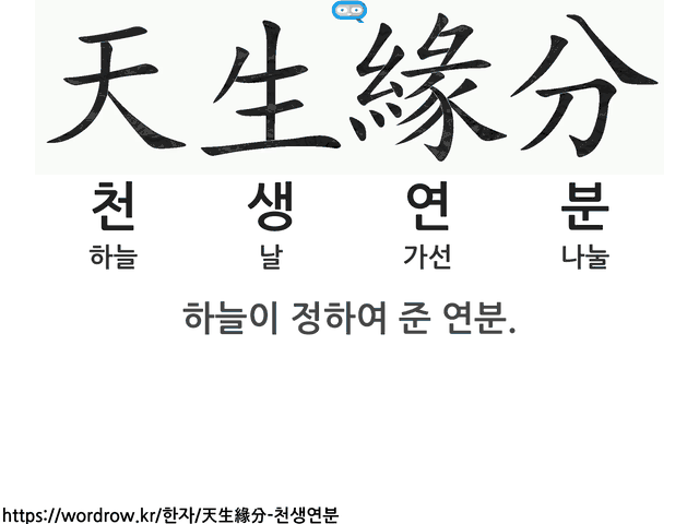 - 천생연분 (天生緣分: 하늘이 맺어준 인연)
