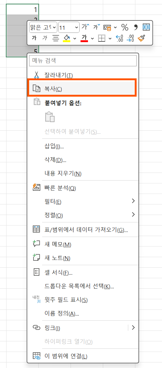 2.붙여넣기할 영역에 마우스 오른쪽 버튼 클릭 후 붙여넣기 옵션중 행열 변경 선택 후 적용.