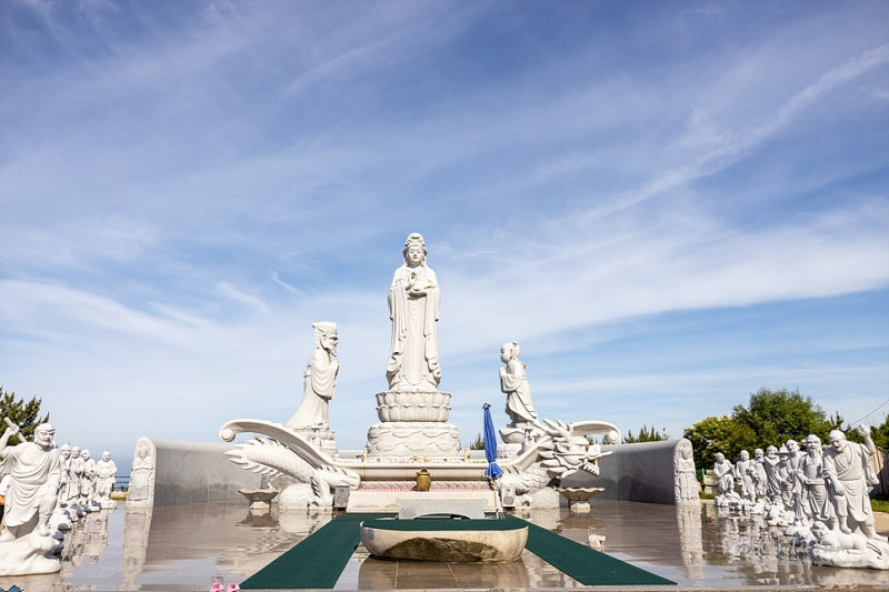 - 지혜관세음보살상: 바다를 내려다보는 언덕 위에 서 있는 거대한 보살상. 손에 책을 들고 지혜를 상징하며, 동해를 배경으로 사진 찍기 최고의 스팟!