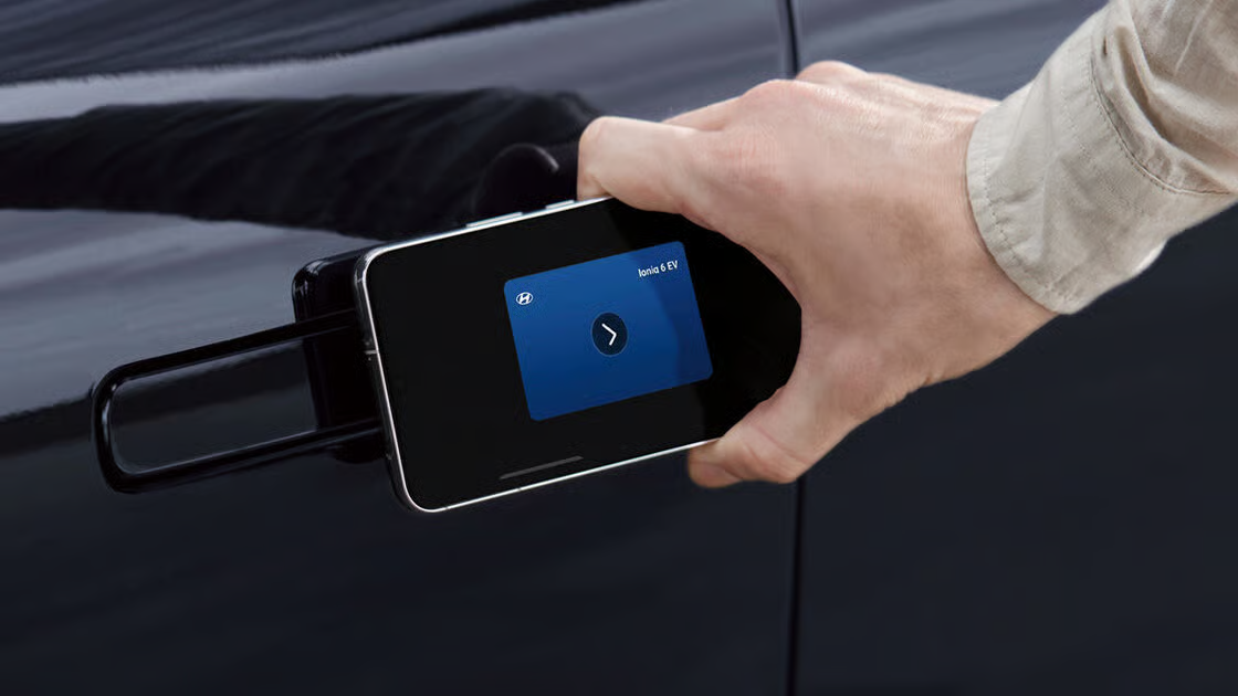 - 디지털 키 (NFC/블루투스/UWB): 스마트폰을 키처럼 사용해 가까이에서 문 열기 & 시동 걸기