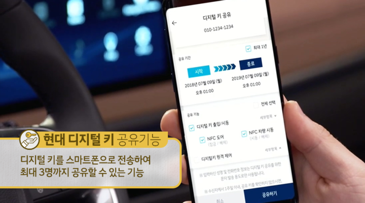- 공유 기능: 가족에게 디지털 키 공유 가능 (myHyundai 앱에서).