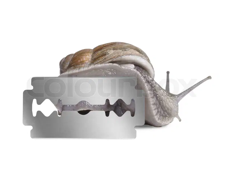 (위 사진들은 실제로 달팽이가 면도날 위를 기어가는 모습을 보여줍니다. 점액이 보호막처럼 작용하는 게 보이시죠?)