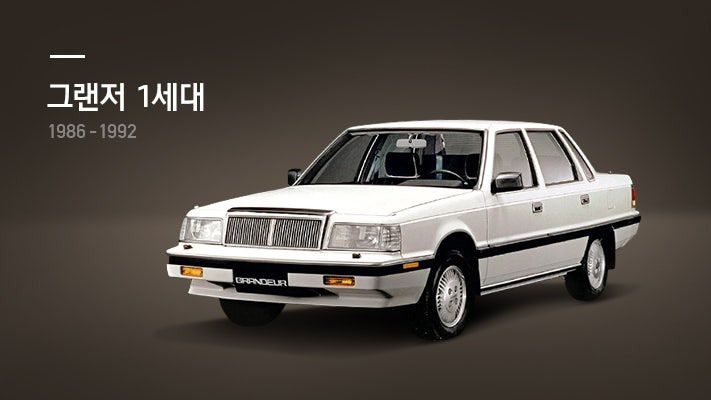 - 특징: 미쓰비시 데보네어 기반 공동 개발. 직선적이고 각진 디자인으로 "각그랜저"라는 별명. 전륜구동 방식 도입, V6 3.0L 엔진 등 고급 사양으로 국산 최고급 세단의 대명사. 성공의 상징으로 부유층에게 인기 폭발.