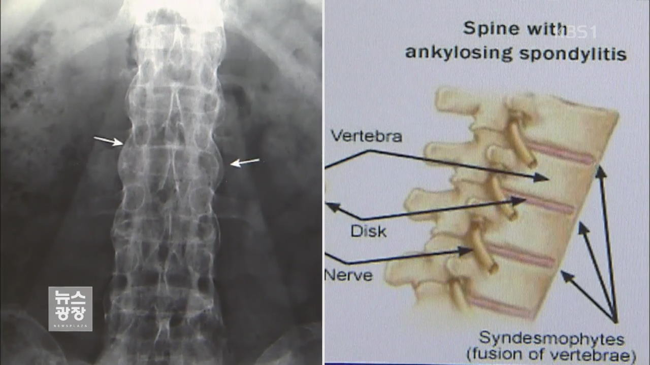 이 질환은 허리 통증으로 시작해 척추가 점점 굳어가는 특징이 있어요.